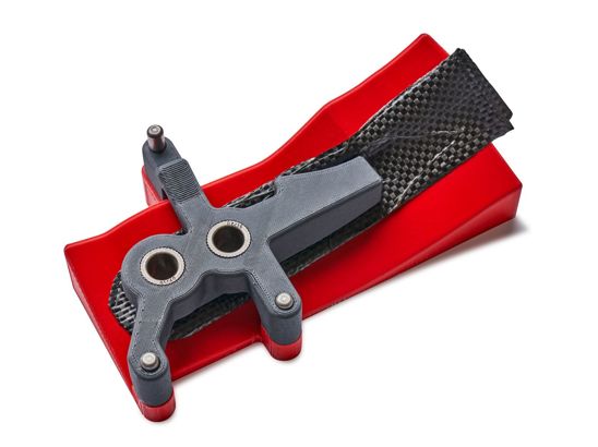 FDM Nylon-CF10 is a nylon carbon fiber filament. The base polymer is filled 10% by weight with chopped carbon, which produces a composite material with much higher strength than the nylon base material. This makes it an excellent choice for 3D printed work-holding fixtures that can be made lighter and faster than traditional metal fixtures, but with sufficient strength.
